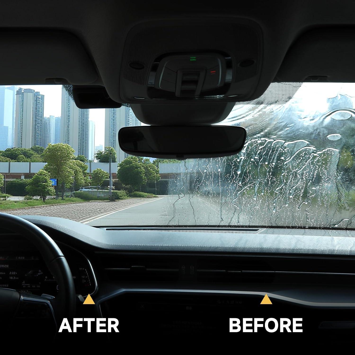 【All-Weather Clarity】As a reliable car glass solution, it ensures unobstructed vision in rain, snow, or fog. Water beads up and slides off instantly, reducing glare and enhancing driving safety