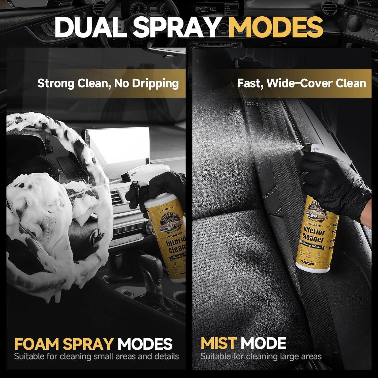 【2-in-1 Switchable Foam & Mist】Foam (strong clean, no drip) for tough stains; Mist (efficient, wide coverage) for quick, large areas. One bottle for all car interior cleaning