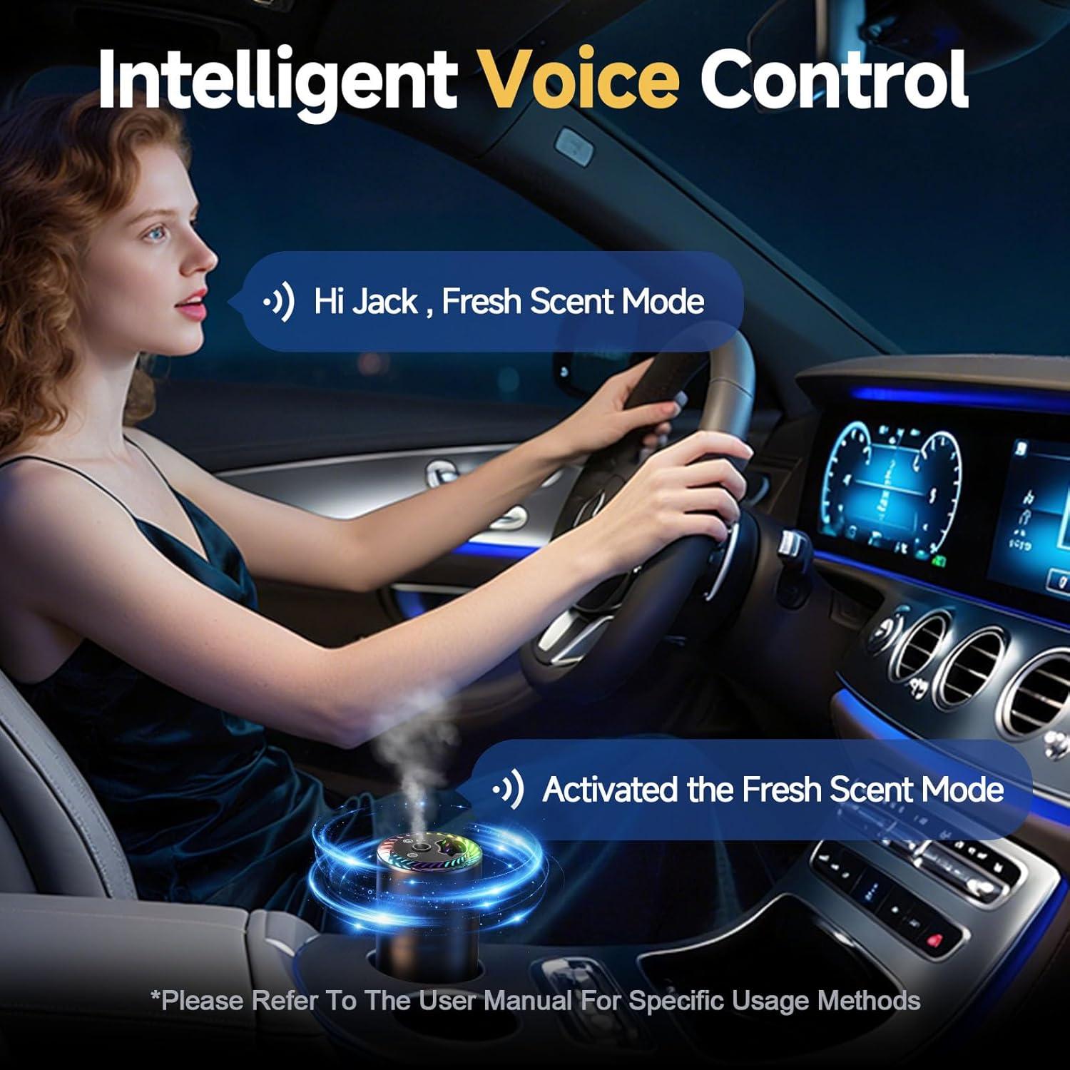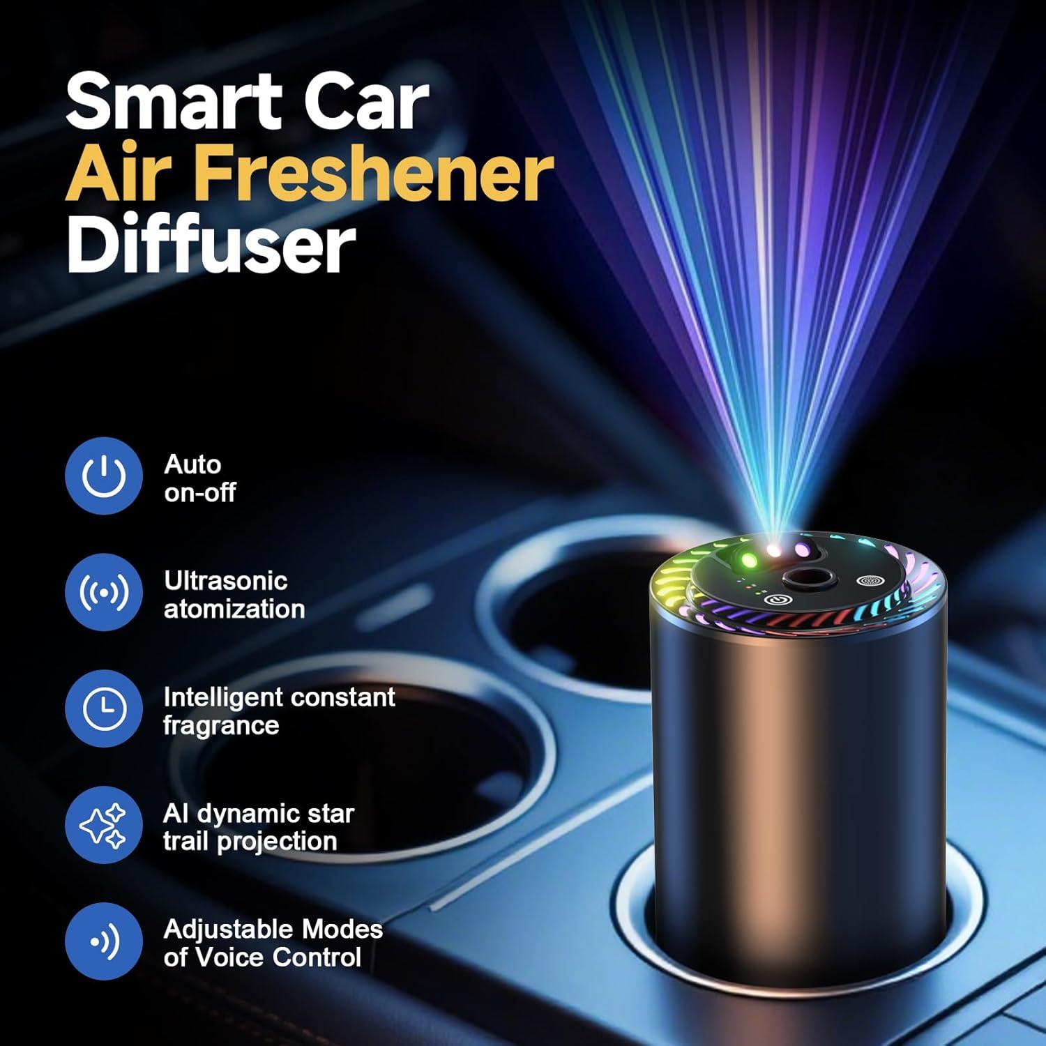 Smart Car Air Freshener Diffuser Voice Control with Starry Projection Light, 3 Adjustable Modes Intelligent Aromatherapy for Essential Oil, Smart Auto On/Off, Voice Edition (Cologne + Ocean)(Cologne and Ocean)